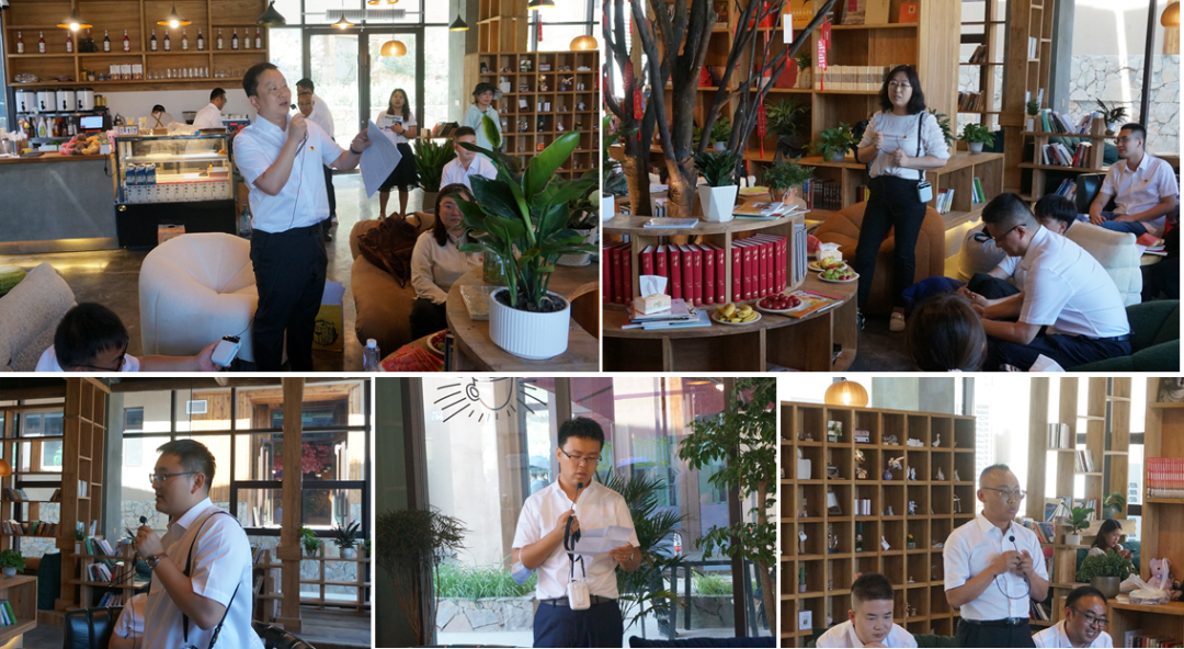 在棲云小鎮(zhèn)書(shū)吧開(kāi)展的“一心永向黨,喜迎二十大”的交流研討會(huì)上,羅堯同志代表第五黨支部作主題發(fā)言。他首先對(duì)參加本次主題黨日活動(dòng)的同志們表示歡迎和感謝,然后為大家深入講解并解讀了我省第十四次黨代會(huì)提出的“一核三帶”省域發(fā)展新藍(lán)圖和“四強(qiáng)”行動(dòng)相關(guān)要點(diǎn),并倡議每一位規(guī)劃工作從業(yè)者應(yīng)當(dāng)加強(qiáng)政治學(xué)習(xí),提高政治站位,在全面把握全省重大政治任務(wù)的前提下,與時(shí)俱進(jìn),緊密聯(lián)系實(shí)際開(kāi)展規(guī)劃設(shè)計(jì)工作,并著眼長(zhǎng)遠(yuǎn)、聚焦重點(diǎn),充分發(fā)揮技術(shù)優(yōu)勢(shì),助力全面推進(jìn)甘肅經(jīng)濟(jì)社會(huì)高質(zhì)量發(fā)展。黨委辦公室主任樊曉丹同志作了“高度重視黨建工作,推動(dòng)黨建工作和業(yè)務(wù)工作深度融合”的主題發(fā)言。她首先肯定了第五黨支部一直以來(lái)在黨建工作中取得的成績(jī),并鼓勵(lì)支部應(yīng)當(dāng)百尺竿頭更進(jìn)一步,積極打造黨建品牌,不斷提升基層黨建工作的引領(lǐng)力、號(hào)召力和吸引力。團(tuán)委書(shū)記劉斌同志以《回顧百年團(tuán)史,匯聚青春力量》為題,講授了一堂生動(dòng)的黨課,帶領(lǐng)大家一起走進(jìn)百年團(tuán)史,追尋信仰之光,勇?lián)啻菏姑?,倡議廣大團(tuán)員應(yīng)當(dāng)緊跟黨走,擔(dān)時(shí)代之責(zé),做新征程的奮進(jìn)者、開(kāi)拓者和奉獻(xiàn)者,傳遞青春力量,綻放青春芳華,用青春和熱血書(shū)寫(xiě)新時(shí)代壯麗篇章。其他黨員及入黨積極分子也從自身學(xué)習(xí)和工作實(shí)際出發(fā),分別就基層黨建、政治理論學(xué)習(xí)、黨員先鋒模范作用發(fā)揮等方面交流了各自的所思所感。