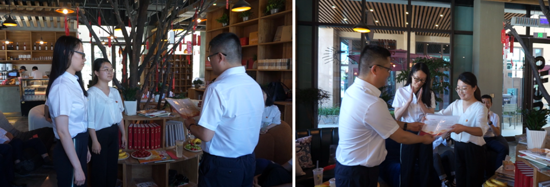 活動(dòng)舉辦當(dāng)天,恰逢黨員袁田同志和仲亞男同志的“政治生日”,為了讓黨員同志們切實(shí)感受到來(lái)自黨組織的溫暖與關(guān)懷,引導(dǎo)廣大黨員進(jìn)一步強(qiáng)化身份意識(shí)、宗旨意識(shí)和責(zé)任意識(shí),交流會(huì)現(xiàn)場(chǎng)還為兩位黨員同志舉辦了一場(chǎng)特別的“政治生日會(huì)”,為她們送上一張?zhí)刂频摹吧召R卡”、一枚新黨徽、一本新黨章,以極富儀式感的活動(dòng)形式,提醒激勵(lì)黨員同志們要時(shí)刻謹(jǐn)記黨員職責(zé),不忘初心、牢記使命,在工作和生活中時(shí)刻以黨員標(biāo)準(zhǔn)嚴(yán)格要求自己,切實(shí)發(fā)揮黨員干部的先鋒模范作用。
