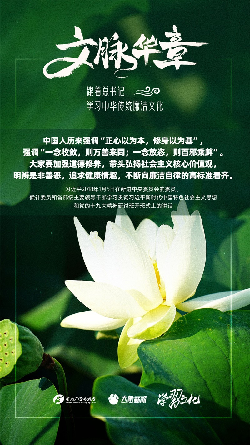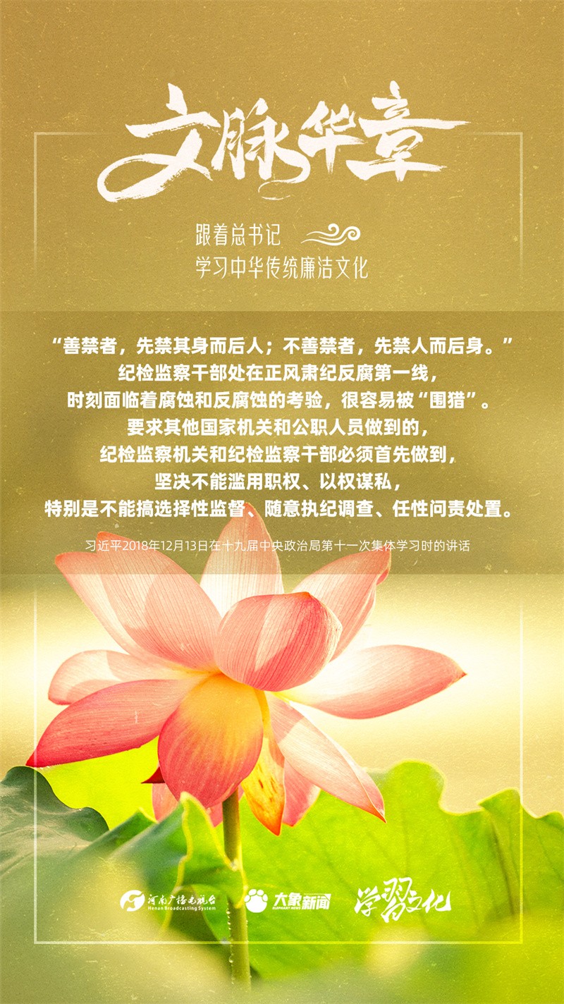 中華優(yōu)秀傳統(tǒng)文化蘊(yùn)含著豐富的廉潔文化,習(xí)近平總書記曾指出:沒(méi)有中華優(yōu)秀傳統(tǒng)文化、革命文化、社會(huì)主義先進(jìn)文化的底蘊(yùn)和滋養(yǎng),信仰信念就難以深沉而執(zhí)著。總書記常常引經(jīng)據(jù)典,教育引導(dǎo)廣大黨員干部正心修身,涵養(yǎng)文化,守住為政之本。讓我們一起跟著總書記學(xué)習(xí)中華傳統(tǒng)廉潔文化。今天推出第三期。