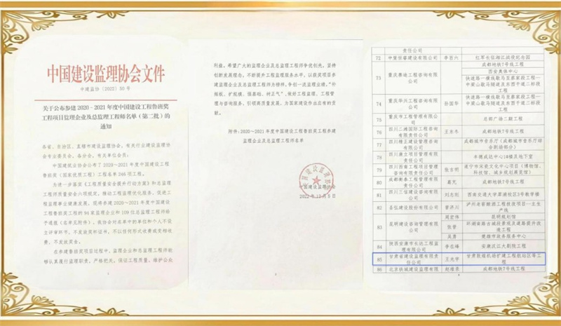 項目榮獲中國建設(shè)工程魯班獎,項目總監(jiān)理工程師榮獲“先進個人”榮譽稱號