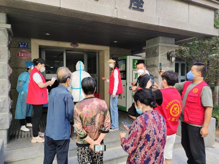 盛元小區(qū)一共有5個(gè)單元,500多戶,2000多人;新港城小區(qū)屬于城關(guān)區(qū)比較大的居民小區(qū),分為ABCDE五個(gè)區(qū),共有300多個(gè)單元,5200多戶,16000多人居住。面對(duì)這些情況,陳萬(wàn)國(guó)、李朋袀和白萬(wàn)景等志愿者沖在前面,維持檢測(cè)秩序,布置核酸檢測(cè)點(diǎn)位,分發(fā)甘肅抗疫中藥包,投放樓棟垃圾,匯總登記問(wèn)題并與社區(qū)和醫(yī)務(wù)人員溝通逐一解決。接受核酸檢測(cè)的隊(duì)伍中,有上至八九十歲的老人,下至三四歲的孩童,還有行動(dòng)不便的病人,他們總是無(wú)微不至,耐心引導(dǎo),尤其在遇到一些行動(dòng)不便的老人和病人時(shí),他們主動(dòng)上前攙扶,把貼心的溫暖送給每一名群眾。