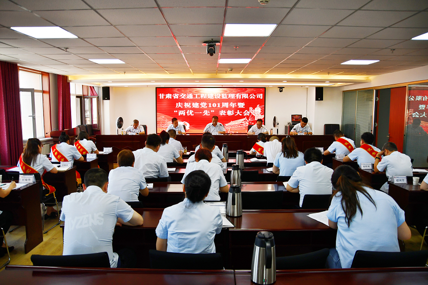 6月30日,甘肅省交通工程建設(shè)監(jiān)理有限責(zé)任公司召開慶祝建黨101周年暨“兩優(yōu)一先”表彰大會。交通監(jiān)理公司領(lǐng)導(dǎo)班子成員,機關(guān)及子公司全體黨員、中層干部,受表彰的先進集體和優(yōu)秀個人代表共計30余人在主會場參加表彰大會,各項目機構(gòu)在分會場參會。會議由交通監(jiān)理公司黨委副書記、總經(jīng)理丁峰主持。
