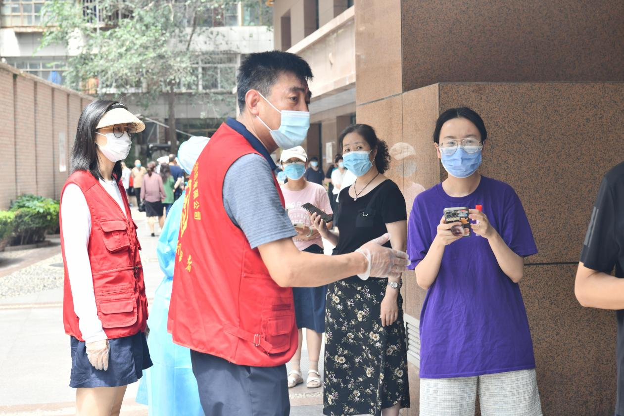 中午時(shí)分,志愿者們頂著38℃的高溫,穿梭在小區(qū)核酸檢測(cè)采集現(xiàn)場(chǎng)、小區(qū)出入口,按照核酸檢測(cè)要求,引導(dǎo)待測(cè)人員佩戴好口罩、保持安全距離、有序排隊(duì)。他們嗓子啞了也顧不上喝一口水,身上的衣服已不知被汗水浸濕了多少次,卻始終沒(méi)有一個(gè)人叫苦叫累,依然努力奮戰(zhàn)在核酸采樣第一線,用實(shí)際行動(dòng)展示“奉獻(xiàn)、友愛(ài)、互助、進(jìn)步”的志愿精神,詮釋國(guó)企擔(dān)當(dāng)。