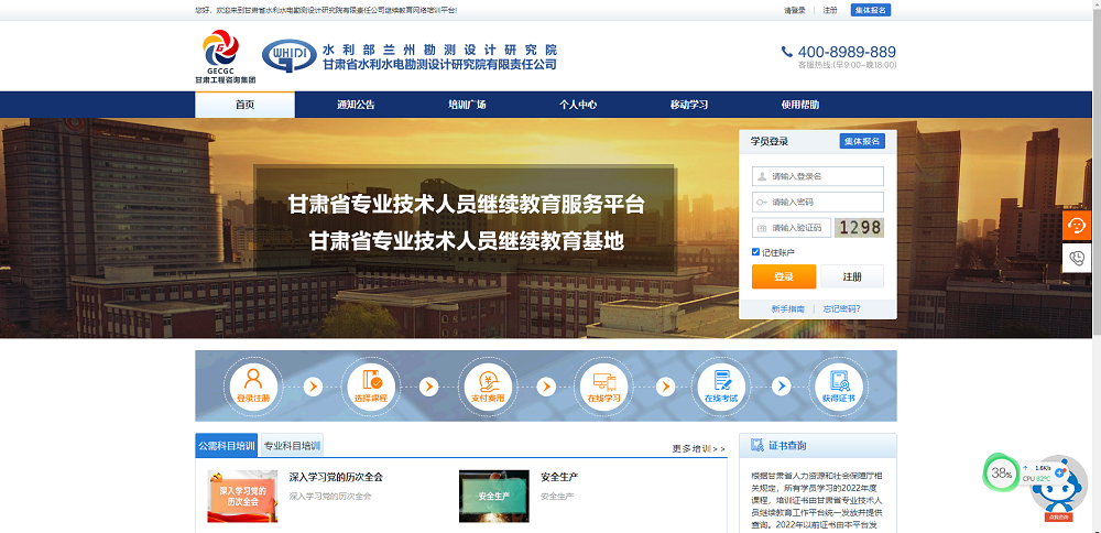 省水電設(shè)計院緊緊圍繞《甘肅省省級專業(yè)技術(shù)人員繼續(xù)教育基地管理辦法》規(guī)定,進一步完善服務(wù)體系,強化基地建設(shè)管理,與北京愛迪科森教育科技股份有限公司合作,積極開發(fā)在線學習平臺,建設(shè)具有水利水電專業(yè)特色的網(wǎng)絡(luò)學習中心,努力提高在線培訓和開展現(xiàn)代化遠程教育的能力。