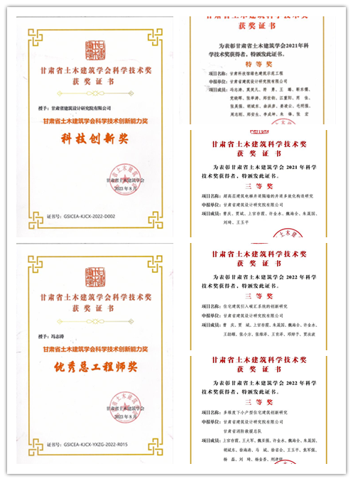 近日,從甘肅省建設(shè)行業(yè)科技創(chuàng)新成果研討會暨頒獎典禮上傳來喜訊:省建筑設(shè)計院被授予“科技創(chuàng)新獎”,設(shè)計的甘肅科技館榮獲“綠色建筑示范工程特等獎”,開展的“住宅建筑引入碳匯系統(tǒng)的創(chuàng)新研究”“多維度下小戶型住宅建筑創(chuàng)新研究”“超高層建筑電梯井道隔墻的井道多效化構(gòu)造研究”等研究榮獲“2022年科學(xué)技術(shù)獎三等獎”;馮志濤榮獲“優(yōu)秀總工程師獎”,上官存霞等8人分別獲得“第四屆中西部地區(qū)土木工程師(建筑師)”“科技貢獻獎”“科技英才獎”。