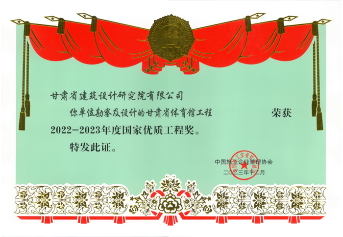 近日,從中國施工企業(yè)管理協(xié)會傳來好消息,由甘肅省工程勘察設計大師、省建筑設計院總建筑師馮志濤帶領團隊設計的甘肅省體育館榮獲“2022-2023年度國家優(yōu)質(zhì)工程獎”榮譽稱號。