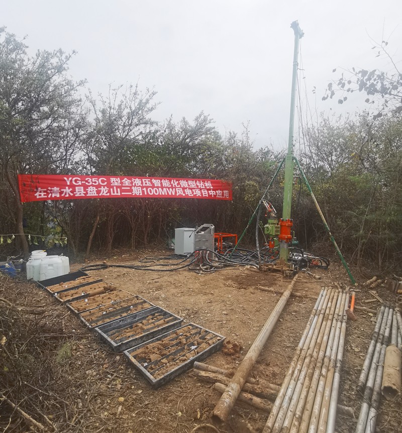 日前,省水電設(shè)計院研發(fā)的YG-35C型全液壓智能化微型鉆機,在清水縣盤龍山二期100MW風電項目中成功應(yīng)用。