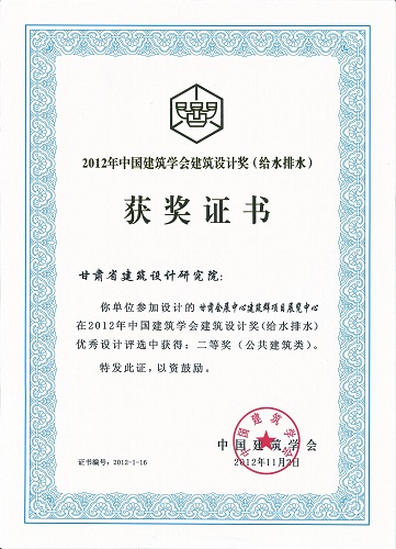 2012年中國建筑學會設(shè)計獎甘肅會展中心(給排水)